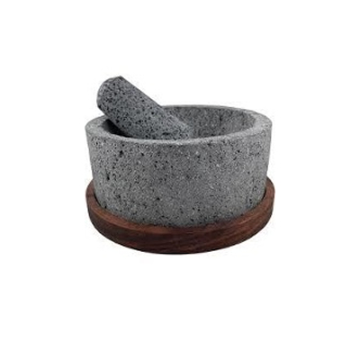 MOLCAJETE PIEDRA VOLCANICA CON BASE MADERA TZALAM 20 ALTURA X 8 DIAMETRO DEL CENTRO CM